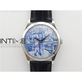 FL공장 파텍필립 칼라트라바 아술레이호스 에나멜다이얼 가죽스트랩 Calatrava Azulejos SS 5089G-61 FL Enamel Dial on Black Leather Strap
