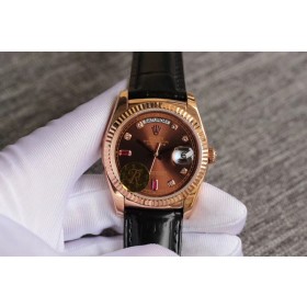 • TR공장 롤렉스 데이데이트 36MM 로골 브라운다이얼 가죽스트랩