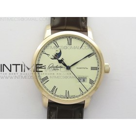 V9공장 오리지널 엑설런스 파노라마 데이트 로골 화이트다이얼 가죽스트랩 Excellence Panorama 40mm Date Moon Phase RG White Dial on Brown Leather Strap A100 > 글라슈테뒤로