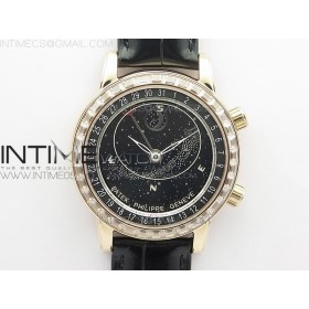 • AI공장 파텍 6104P 문 로골 블랙다이얼 가죽스트랩 6104P Moon RG AIF Black Dial Diamond Bezel on Black Leather Strap A240