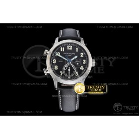GR공장 V2 칼라트라바 블랙다이얼 가죽스트랩 Calatrava Pilot Travel Time 5524 SS/LE Blk V2 GRF M9015