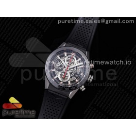 XF공장 칼리버호이어 43 스켈레톤다이얼 러버 Calibre Heuer 01 Chrono 43mm SS XF 1:1 Best Edition Skeleton Dial Red Hand on Black Rubber Strap A1887