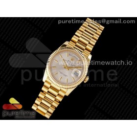 GM공장 롤렉스 데이데이트 40 옐로우골드 금통 실버다이얼 2836 Day Date 40 YG 904L Steel Fluted Bezel GMF 1:1 Best Edition Silver Stick Dial on YG Bracelet A2836