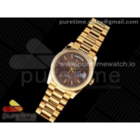 • GM공장 롤렉스 데이데이트 40 옐로우골드 금통 브라운다이얼 2836 Day Date 40 YG 904L Steel Fluted Bezel GMF 1:1 Best Edition Brown Stick Dial on YG Bracelet A2836