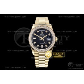 • GM공장 롤렉스 데이데이트 36 옐로우골드 금통 다이아몬드베젤 블랙다이얼 2836 DayDate 36mm Flt Pres 904L Dia YG/YG Blk/Dia GMF A2836
