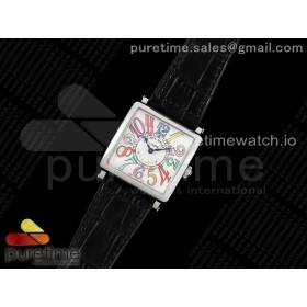 ZF공장 프랭크뮬러 마스터스퀘어 화이트다이얼 가죽스트랩 Master Square SS Ladies ZF 1:1 Best Edition White Colorful Arabic Dial on Black Leather Strap Ronda Quartz