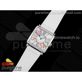 ZF공장 프랭크뮬러 마스터스퀘어 화이트다이얼 가죽스트랩 Master Square SS Ladies ZF 1:1 Best Edition White Colorful Arabic Dial on White Leather Strap Ronda Quartz