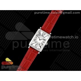 ZF공장 프랭크뮬러 롱아일랜드 화이트다이얼 가죽스트랩 Long Island Ladies SS ZF 1:1 Best Edition on Red Leather Strap Ronda Quartz