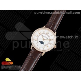 • ZF공장 랑데뷰 로골 화이트텍스쳐다이얼 가죽스트랩 Rendez-Vous Moon Medium RG ZF 1:1 Best Edition White Textured Dial Diamonds Bezel on Brown Leather Strap A935