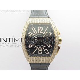 AB공장 뱅가드 로골 블랙다이얼 거미스트랩 Vanguard V45 Chrono RG pave crystals ABF Best Edition Black Dial on Black Gummy Strap A7750 > 프랭크뮬러뒤로