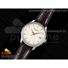 3K공장 파텍필립 칼라트라바 5227 스틸 아이보리다이얼 플립시스루백 가죽스트랩 Calatrava 5227 SS 3KF 1:1 Best Edition White Dial on Brown Leather Strap A324 Super Clone V2