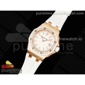 TW공장 오데마피게 로얄오크 오프쇼어 레이디 37 67540 로즈골드금통 다이아몬드베젤 화이트다이얼 러버스트랩 Royal Oak Offshore Ladies 37mm 67540 RG TWF Best Edition White Dial on White Rubber Strap ETA Quartz