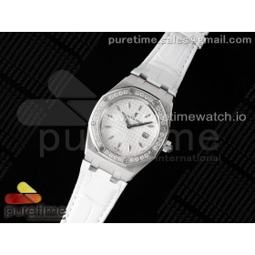 TW공장 오데마피게 로얄오크오프쇼어 레이디 37 스틸 다이아몬드베젤 화이트다이얼 가죽스트랩 Royal Oak Offshore Ladies 37mm SS TWF Best Edition White Dial Diamonds Bezel on White Leather Strap ETA Quartz