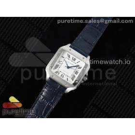 • 3K공장 까르띠에 산토스 미디움 35 스틸 화이트다이얼 가죽스트랩 Santos de Cartier 35mm 3KF 1:1 Best Edition White Dial on Blue Leather Strap MIYOTA 9015