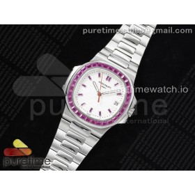 GR공장 파텍필립 노틸러스 5711 스틸 퍼플다이아몬드바게트베젤 화이트다이얼 퍼플바게트인덱스 브레이슬릿 Nautilus 5711 SS GRF 1:1 Best Edition White Dial Purple Diamonds Bezel on SS Bracelet 324CS