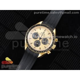 RM공장 오메가 스피드마스터 문페이즈 인 문샤인 골드 옐로우골드금통 샴페인다이얼 블랙서브다이얼 러버스트랩 Speedmaster Moonwatch in Moonshine Gold YG RMF Best Edition YG Dial on Black Rubber Strap Manual Chrono