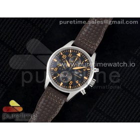 AZ공장 IWC 파일럿 크로노그래프 스틸 블랙다이얼 오렌지인덱스 빈티지핸즈 브라운가죽스트랩 Pilot Chrono SS AZF 1:1 Best Edition Black Dial Orange Markers on Brown Leather Strap A7750
