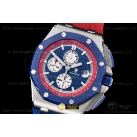 RS공장 오데마피게 로얄오크오프쇼어 크로노그래프 44 스틸 블루베젤 레드이너베젤 블루다이얼 레드블루러버스트랩 AP0756B - AP ROO Chronograph Red SS/RU Blue/Stk RSF A3126 Mod