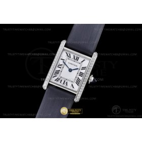F1공장 까르띠에 탱크 머스트 스몰 다이아몬드베젤 블랙스트랩 Cartier Tank Must Small Dia SS/LE Wht F1F Sw Qtz