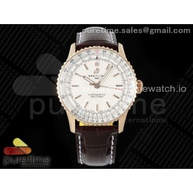 • TF공장 브라이틀링 내비타이머 41미리 로즈골드금통 화이트다이얼 가죽스트랩 Navitimer Automatic 41mm SS/RG TF 1:1 Best Edition White Dial on Brown Leather Strap A2824
