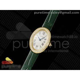 • AF공장 까르띠에 베누아 옐로우골드금통 화이트다이얼 다이아몬드베젤 그린가죽스트랩 Baignoire Watch YG AF 1:1 Best Edition White Dial Diamonds Bezel on Green Croco Strap RONDA Quartz