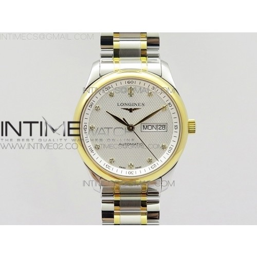 LG공장 론진 마스터 데이데이트 옐로우골드콤비 화이트다이얼 다이아몬드인덱스 브레이슬릿 MASTER COLLECTION SS/YG WHITE DIAL ON SS BRACELET A2836