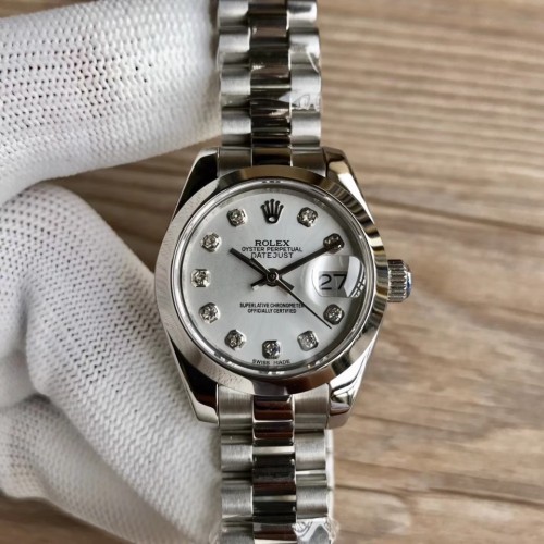 • WF공장 롤렉스 레이디 데이저스트26 실버 돔베젤 실버선레이다이얼 텐포인트인덱스 프레지던트브레이슬릿