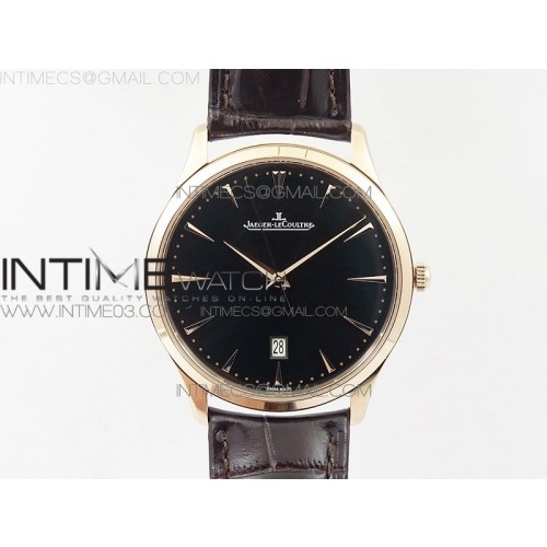 ZF공장 예거르쿨트르 마스터 울트라씬 데이트 로즈골드금장 블랙다이얼 가죽스트랩 MASTER 1288420 RG BLACK DIAL ON BROWN LEATHER STRAP A899/1