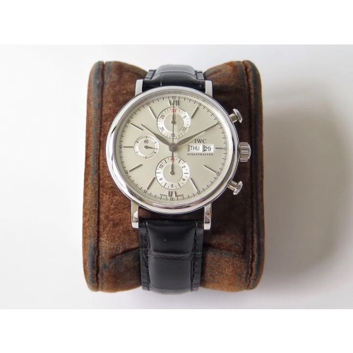 ZF공장 IWC 포르토피노크로노 스틸 화이트다이얼 블랙가죽스트랩 Portofino Chrono SS White Dial SS Markers on Black Leather Strap A7750 > IWC