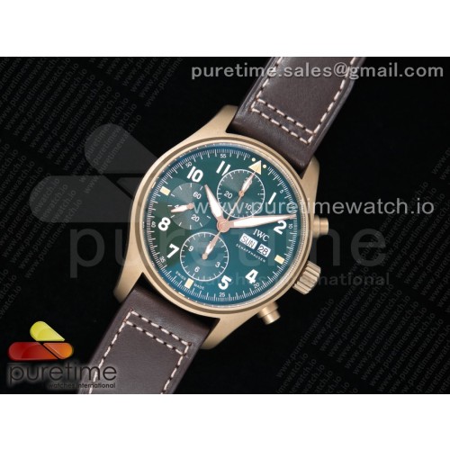 ZF공장 IWC 파일럿 크로노그래프 스핏파이어 브론즈케이스 그린다이얼 가죽스트랩 Pilot Chrono Spitfire IW387902 Bronze Green Dial on Brown Leather Strap A7750