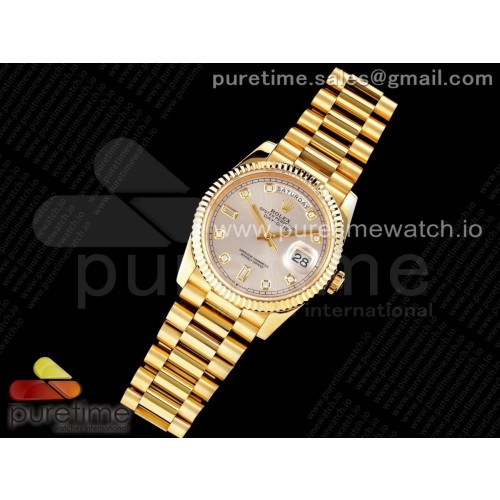 GM공장 롤렉스 데이데이트 40 옐로우골드 금통 자개다이얼 2836 Day Date 40 YG 904L Steel Fluted Bezel GMF 1:1 Best Edition Gray MOP Diamonds Dial on YG Bracelet A2836