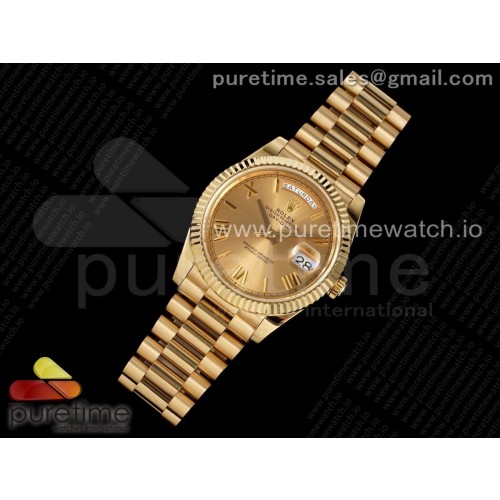 GM공장 롤렉스 데이데이트 40 옐로우골드 금통 샴페인다이얼 2836 Day Date 40 YG 904L Steel Fluted Bezel GMF 1:1 Best Edition YG Roman Dial on YG Bracelet A2836