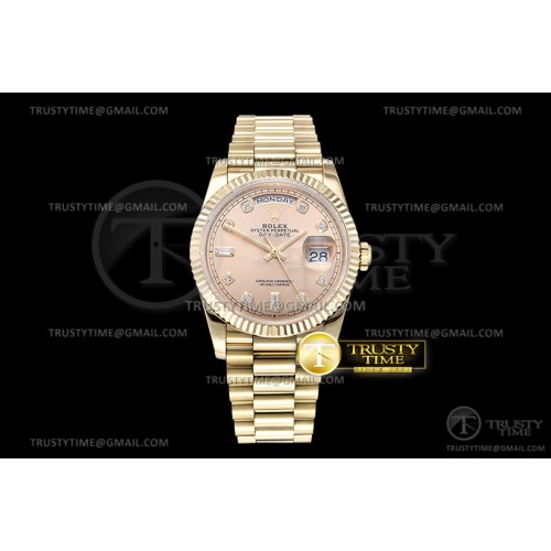 GM공장 롤렉스 데이데이트 36 옐로우골드 금통 자개다이얼 다이아몬드인덱스 2836 DayDate 36mm Flt Pres 904L YG/YG Wht M/Dia GMF A2836
