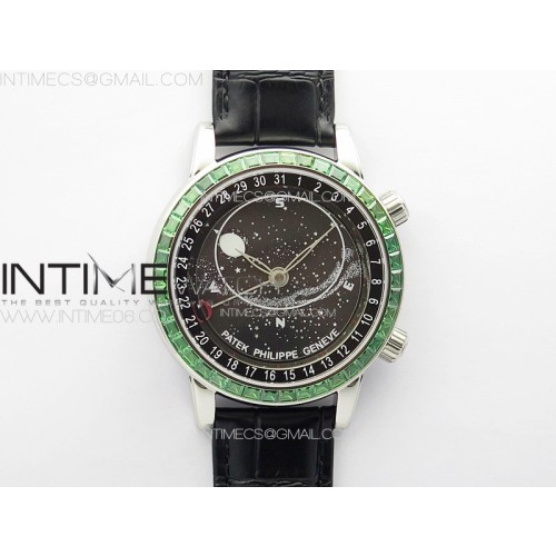 • 3E공장 파텍필립 6104P 문 그린다이아몬드배젤 블랙다이얼 블랙가죽스트랩 6104P Moon SS 3EF Best Edition Black Dial Green T Diamond Bezel on Black Leather Strap A240