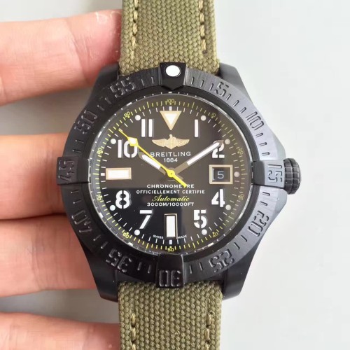 BL공장 브라이틀링 어벤져2 씨울프 블랙 PVD 아라빅 옐로우핸즈 Breitling Avenger2 SeaWolf Black PVD Arabic Yellow Hand 올리브스트랩 > 브라이틀링