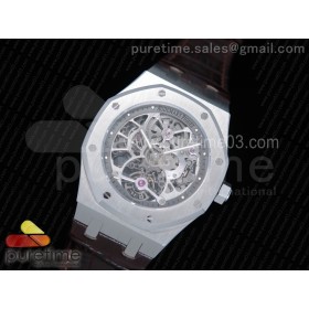 오데마피게 스켈레톤 투어빌론 스틸 브라운가죽스트랩 Royal Oak Fake Tourbillon SS Skeleton Dial on Black Leather Strap A23J