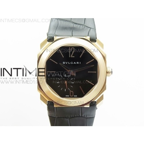 JL공장 불가리 옥토 12028 로즈골드 블랙다이얼 가죽스트랩 OCTO 12028 RG BLACK DIAL ON BLACK LEATHER STRAP A2824 > 불가리