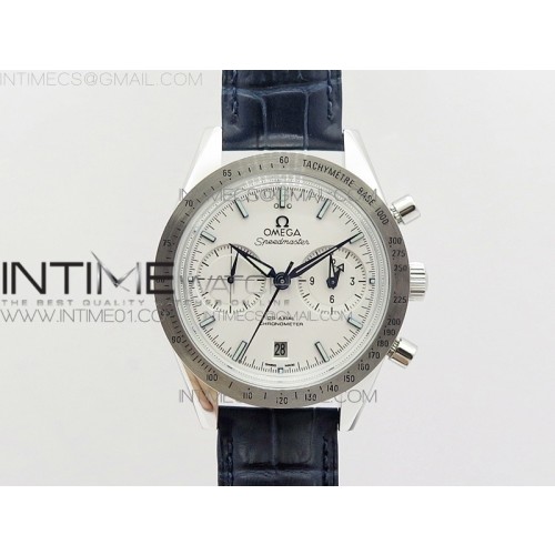 OM공장 오메가 스피드마스터57 스틸 화이트다이얼 블루핸즈 네이비가죽스트랩 SPEEDMASTER '57 CO-AXIAL WHITE DIAL BLUE MARKERS ON BLUE LEATHER STRAP A9300 (FREE THE LEATHER STRAP) > 오메가