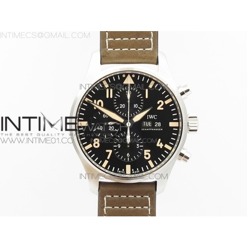 ZF공장 IWC 파일럿 20주년기념 한정판 PILOT CHRONO 20TH BLACK DIAL ON BROWN LEATHER STRAP A7750