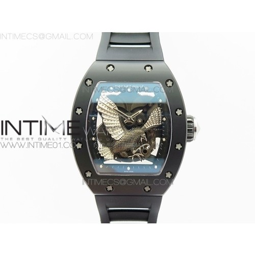 KV 리차드밀 RM023 풀세라믹 이글 스켈레톤다이얼 RM023 REAL CERAMIC CASE EAGLE SKELETON DIAL SS CROWN ON BLACK RUBBER STRAP MIYOTA8215