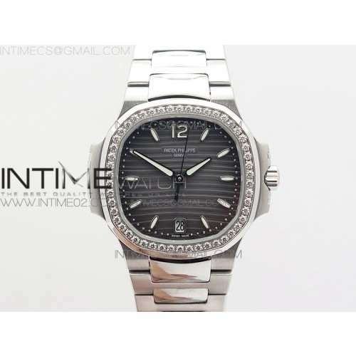 PF공장 파텍필립 노틸러스점보 레이디 7118 스틸 다이아몬드베젤 그레이다이얼 NAUTILUS JUMBO LADIES 7118 GRAY TEXTURED DIAL DIAMONDS BEZEL ON SS BRACELET A324 CLONE