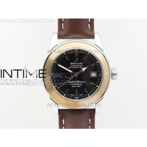 브라이틀링 슈퍼오션 스틸 샴페인골드베젤 블랙다이얼 가죽스트랩 SUPEROCEAN 42MM A17321 SS BLACK DIAL CHAMPAGNE GOLD BEZEL ON BROWN LEATHER STRAP ETA2824