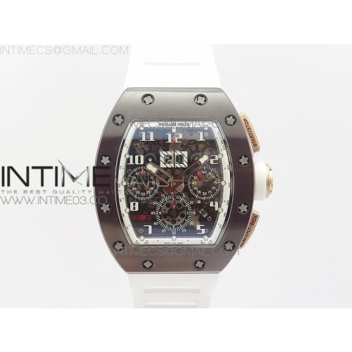 KU공장 리차드밀 RM011 크로노그래프 로즈골드앤블랙세라믹케이스 스켈레톤다이얼 화이트러버스트랩 RM011 RG CASE CHRONOGRAPH BLACK CERAMIC BEZEL SKELETON DIAL ON WHITE RUBBER STRAP A7750 KV공장
