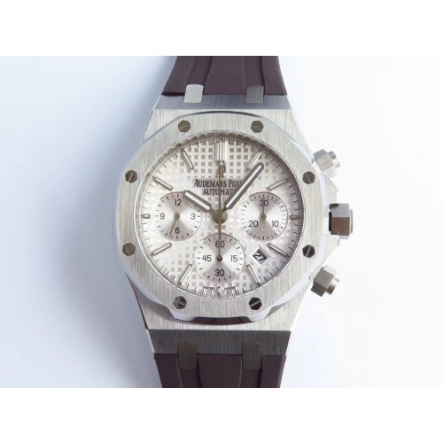 오데마피게 로얄오크 크로노그래프 스틸 실버다이얼 러버스트랩