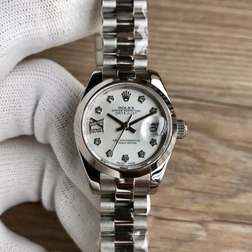 WF공장 롤렉스 레이디 데이저스트26 실버 돔베젤 화이트다이얼 다이아몬드인덱스 프레지던트브레이슬릿