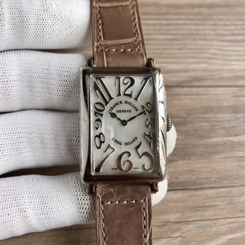 프랭크뮬러 롱아일랜드 스틸 화이트자개다이얼 실버양각인덱스 브라운엘리스트랩