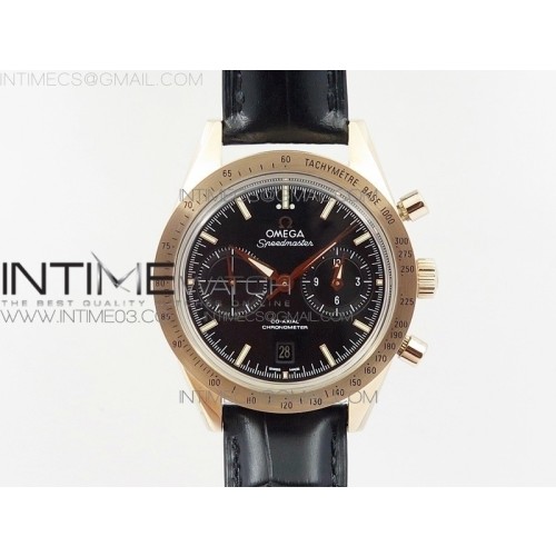 OM공장 오메가 스피드마스터57 코엑시얼 블랙다이얼 로즈골드금장 가죽스트랩 SPEEDMASTER '57 CO-AXIAL RG BLACK DIAL WHITE MARKERS ON BLACK LEATHER STRAP A9300 (FREE LEATHER STRAP)