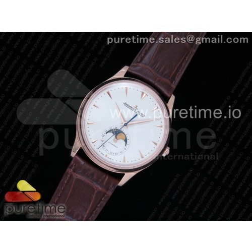 ZF공장 예거르쿨트르 마스터 울트라씬 문페이즈 로즈골드 화이트다이얼 Master Ultra Thin Moon 1362520 RG White Dial on Brown Leather Strap A925