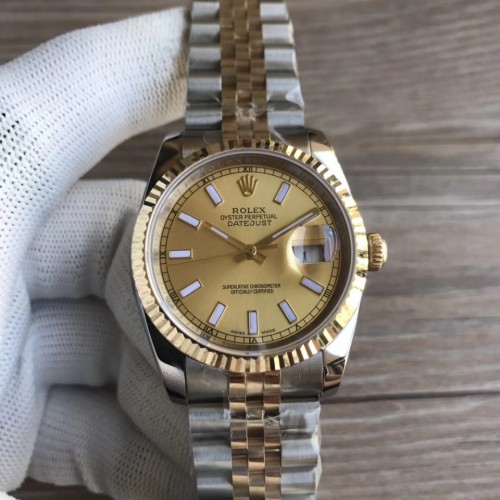 GM공장 롤렉스 데이저스트36미리 옐로우골드포금콤비 샴페인다이얼 바인덱스 플루티드베젤 쥬빌레브레이슬릿 > 롤렉스