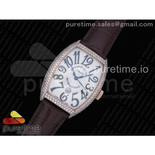 프랭크뮬러 카사블랑카 로즈골드금장 풀다이아몬드화이트앤블랙다이얼 브라운가죽스트랩 Casablanca RG Full Paved Diamonds White/Black Dial on Brown Leather Strap MIYOTA 8215